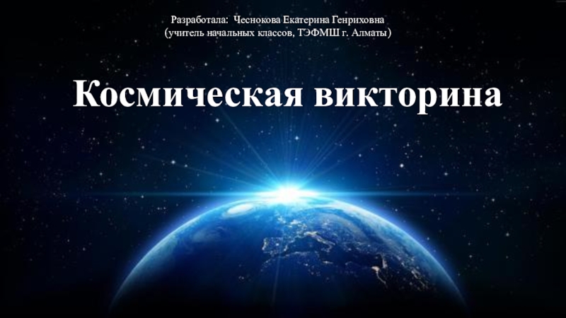 Космическая викторинаРазработала: Чеснокова Екатерина Генриховна (учитель начальных классов, ТЭФМШ г. Алматы)