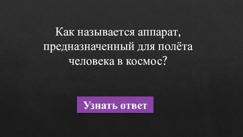 Слайд 11Как называется аппарат, предназначенный для полёта человека в космос?