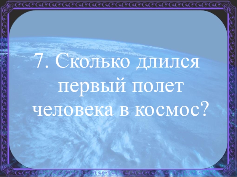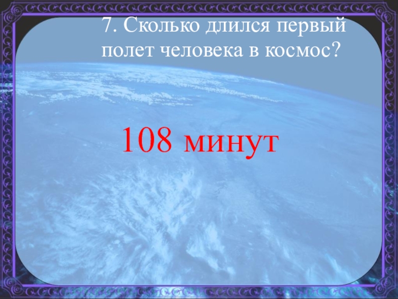 Слайд 15 7. Сколько длился первый полет человека в космос?