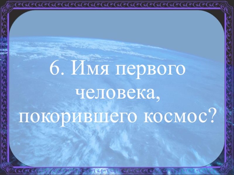 Слайд 13 6. Имя первого человека, покорившего космос?