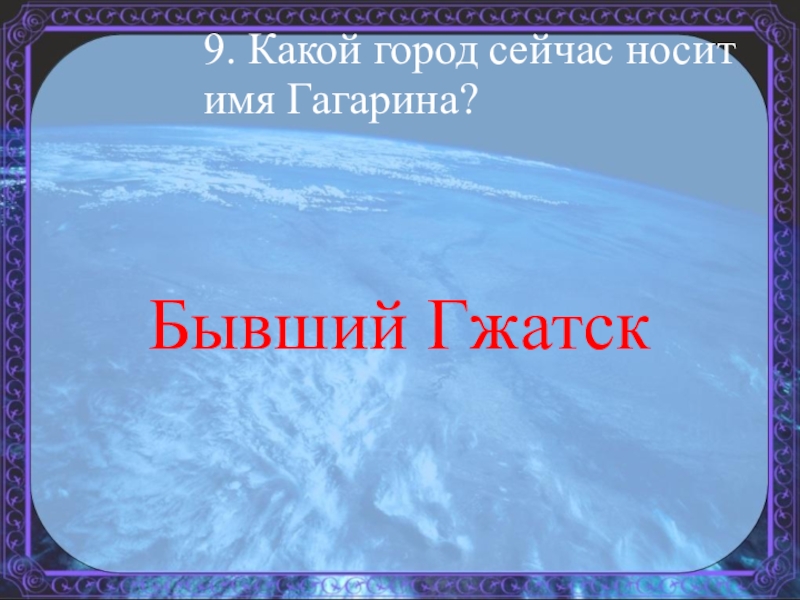 Слайд 19 9. Какой город сейчас носит имя Гагарина?