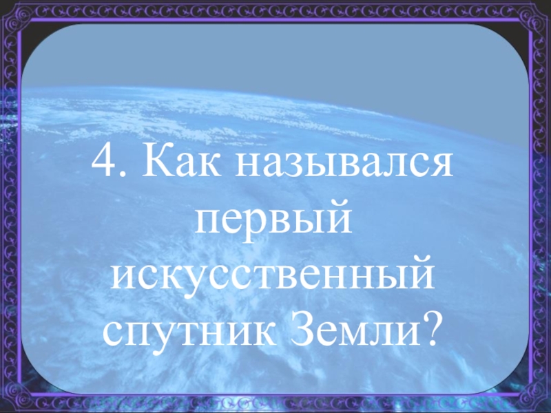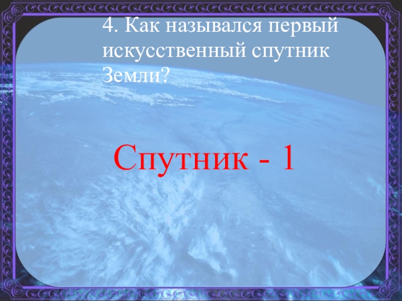 Слайд 9 4. Как назывался первый искусственный спутник Земли?