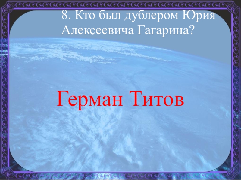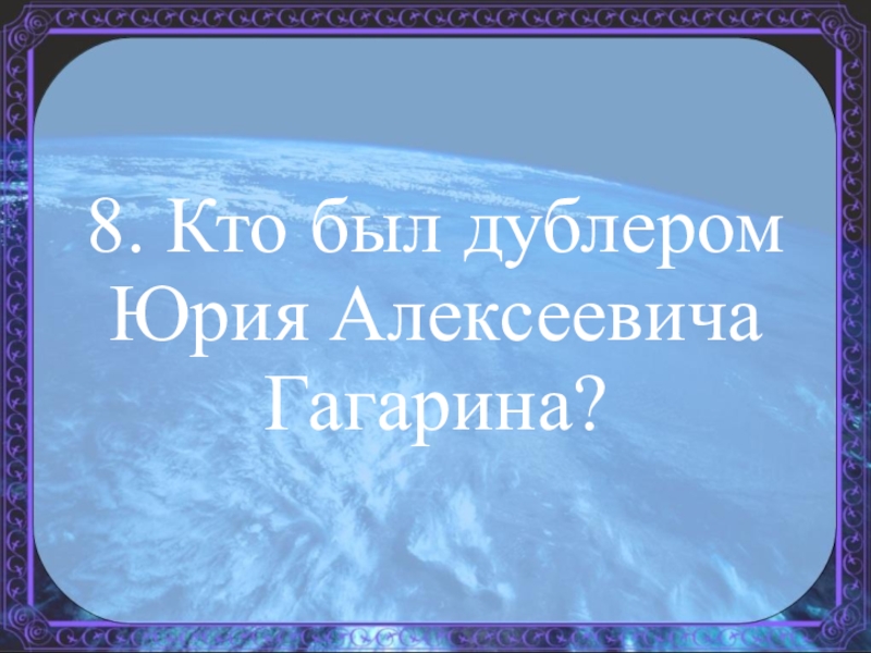 Слайд 17 8. Кто был дублером Юрия Алексеевича Гагарина?