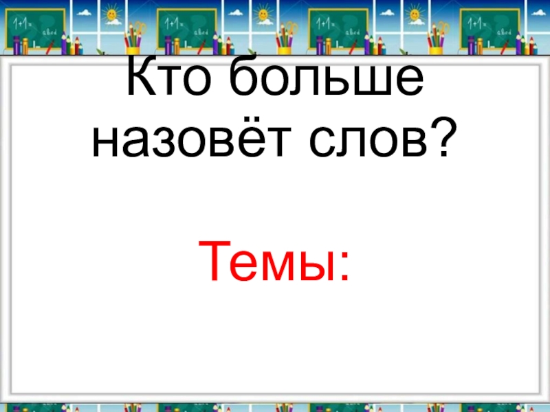 Слайд 2 Кто больше назовёт слов? Темы: