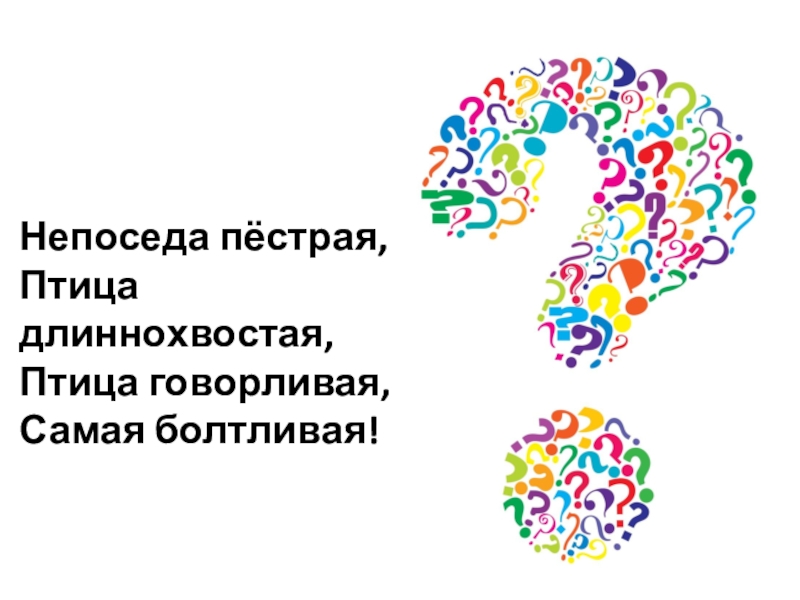 Непоседа пёстрая,Птица длиннохвостая,Птица говорливая,Самая болтливая!