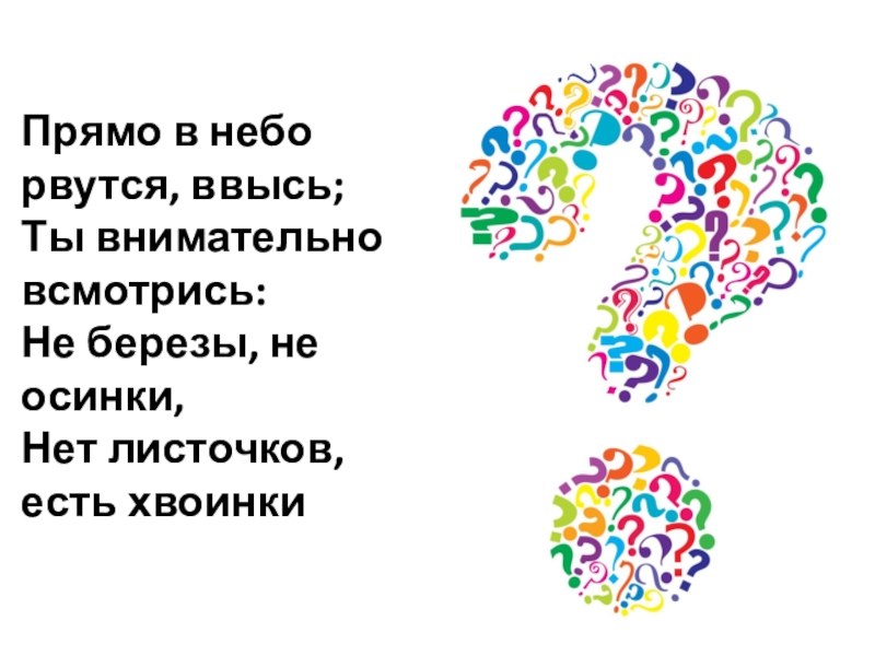 Прямо в небо рвутся, ввысь;Ты внимательно всмотрись: Не березы, не осинки,Нет листочков, есть хвоинки