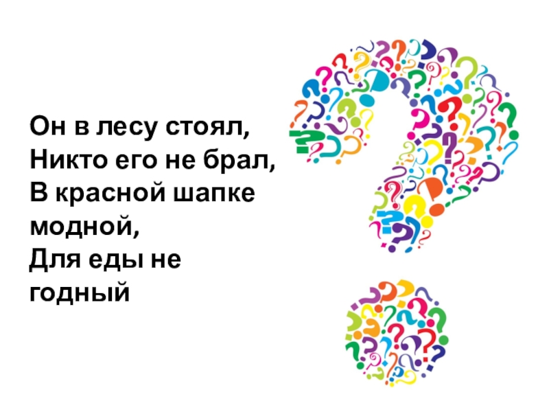 Он в лесу стоял,Никто его не брал,В красной шапке модной,Для еды не годный