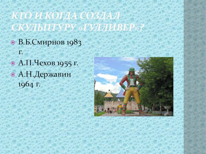 Это сайт презентаций, где можно хранить и обмениваться своими презентациями, докладами, проектами, шаблонами в формате PowerPoint с другими пользователями. Мы помогаем школьникам, студентам, учителям, преподавателям хранить и обмениваться учебными материалами.