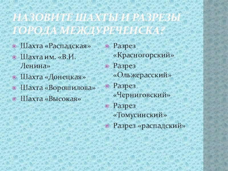 Разрез «распадский»