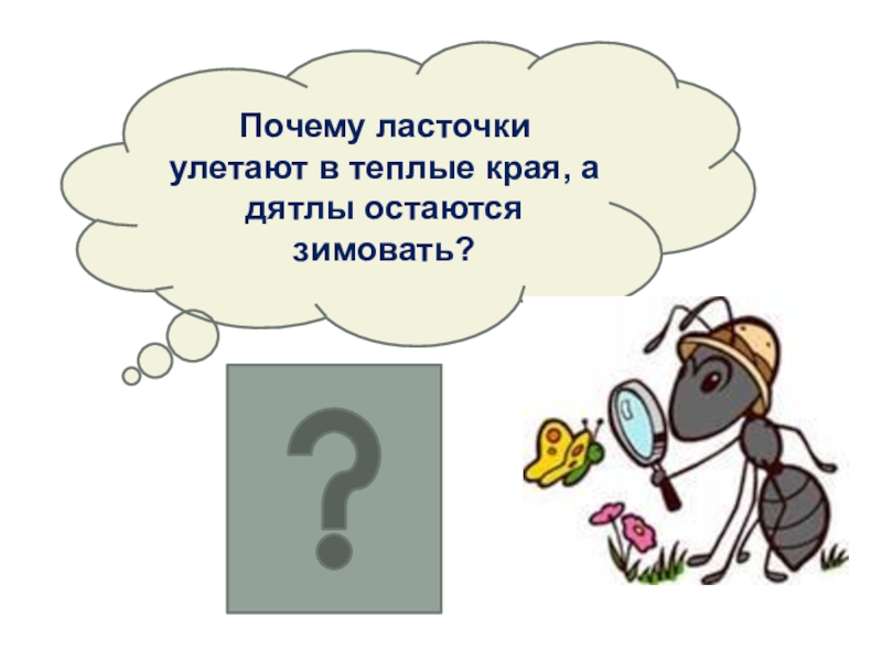 Слайд 16Почему ласточки улетают в теплые края, а дятлы остаются зимовать?