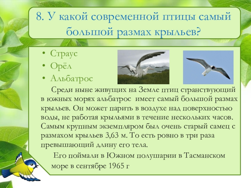 Слайд 98. У какой современной птицы самый большой размах крыльев?