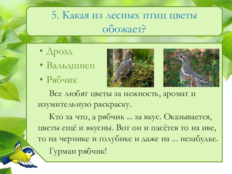 Слайд 65. Какая из лесных птиц цветы обожает?