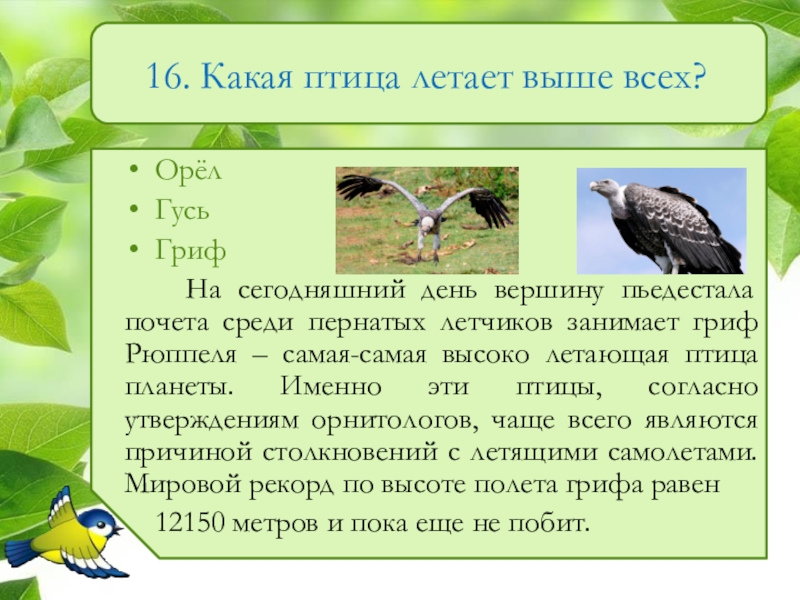 Слайд 1716. Какая птица летает выше всех?