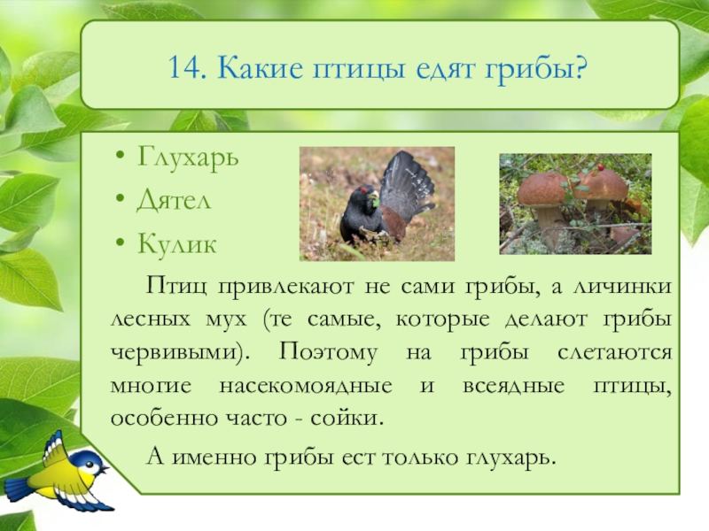 Слайд 1514. Какие птицы едят грибы?