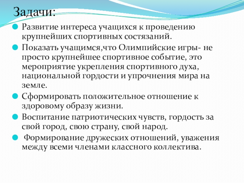 Развитие интереса учащихся к проведению крупнейших спортивных состязаний.