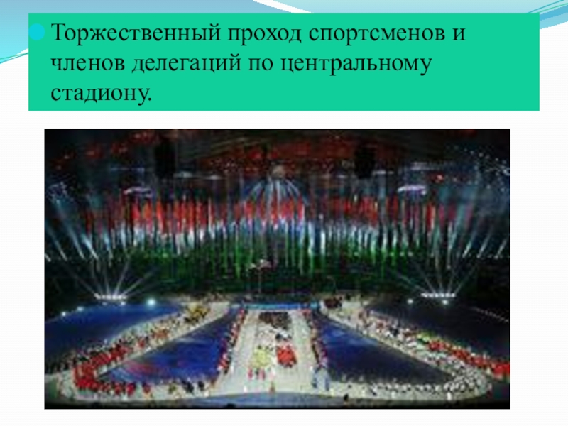 Слайд 23Торжественный проход спортсменов и членов делегаций по центральному стадиону.