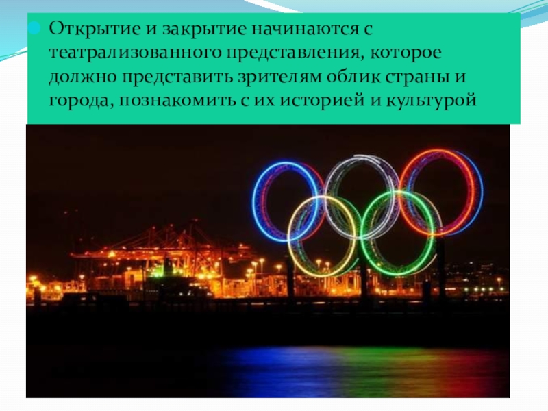 Слайд 22Открытие и закрытие начинаются с театрализованного представления, которое должно представить зрителям