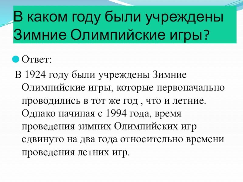 Слайд 9В каком году были учреждены Зимние Олимпийские игры?