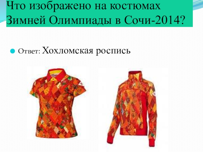 Слайд 15Что изображено на костюмах Зимней Олимпиады в Сочи-2014?