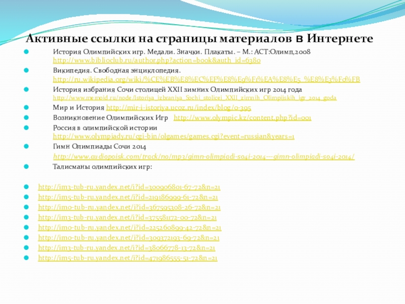Слайд 36Активные ссылки на страницы материалов в Интернете
