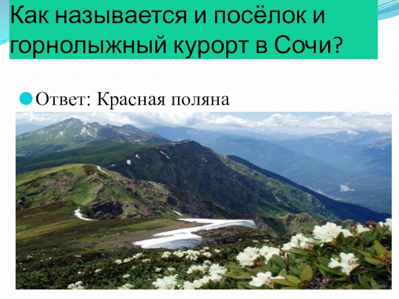 Слайд 18Как называется и посёлок и горнолыжный курорт в Сочи?