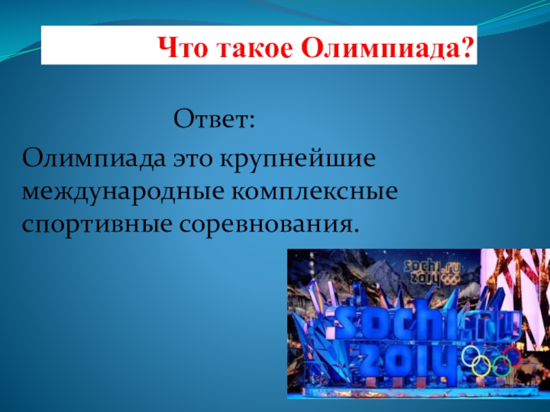 Олимпиада это крупнейшие международные комплексные спортивные соревнования.