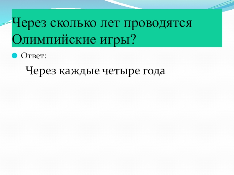 Слайд 16Через сколько лет проводятся Олимпийские игры?