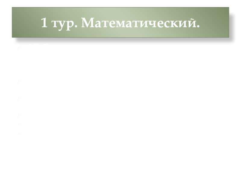 1 тур. Математический.1.Забежал щенок в курятник разогнал всех петухов. Три взлетели на насест, а один в кадушку