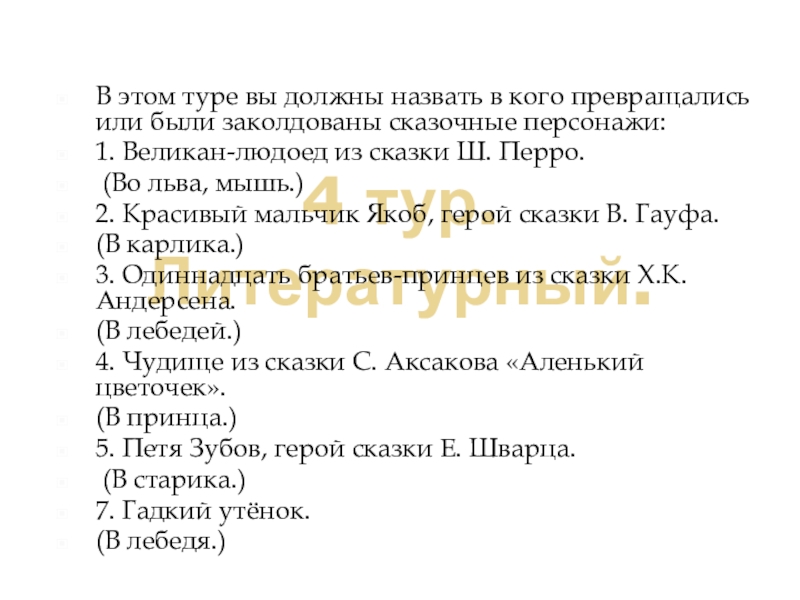 4 тур. Литературный. В этом туре вы должны назвать в кого превращались