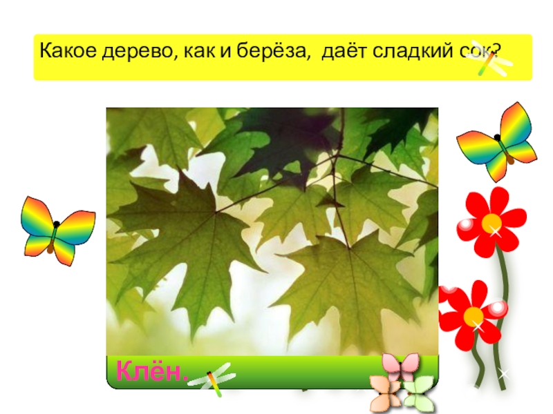 Клён.Какое дерево, как и берёза, даёт сладкий сок?