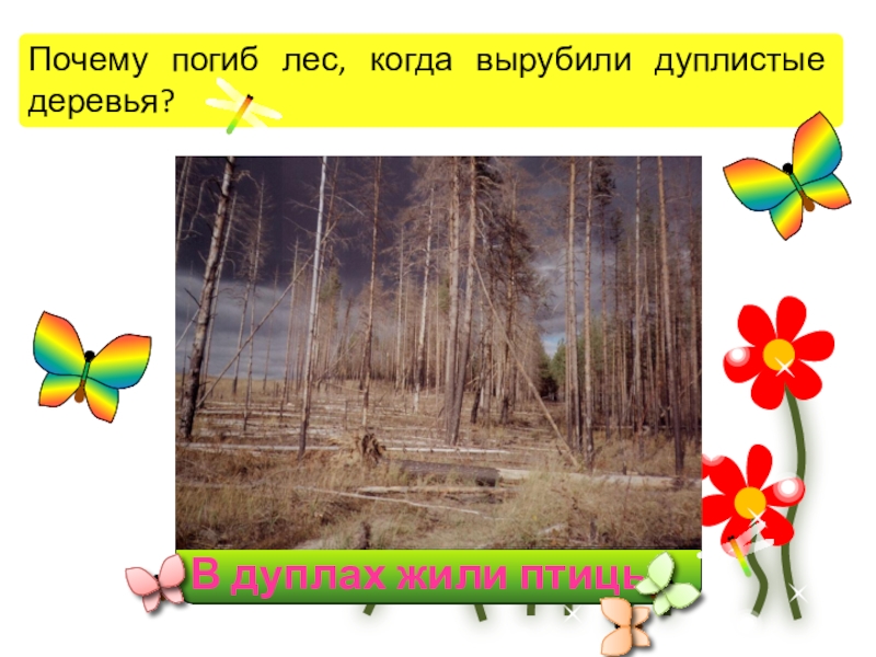 В дуплах жили птицы.Почему погиб лес, когда вырубили дуплистые деревья?