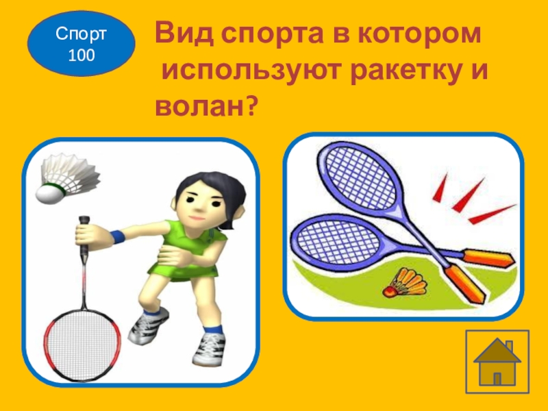 Спорт100Вид спорта в котором используют ракетку и волан?