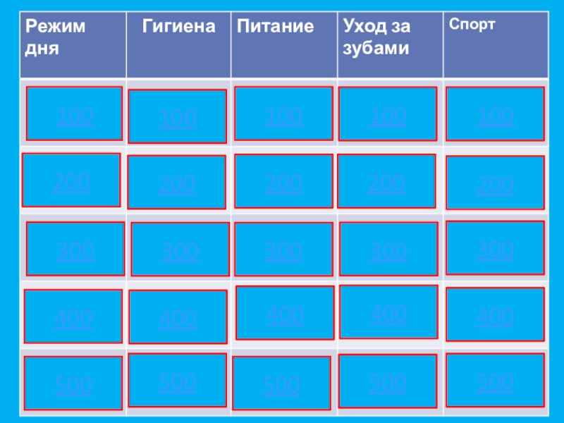 Режим дня100Утром раньше поднимайся,Бегай, прыгай, отжимайся.Для здоровья, для порядкаЛюдям всем нужна …