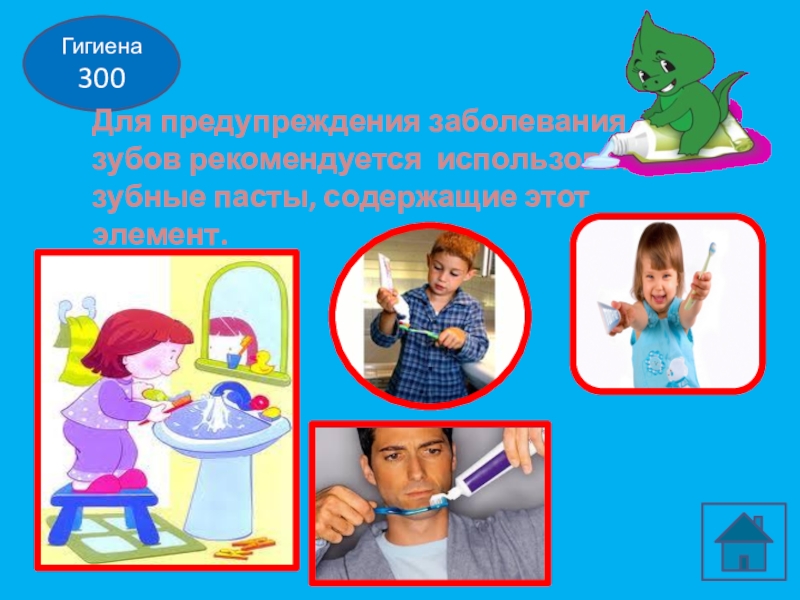 Гигиена300Для предупреждения заболеваниязубов рекомендуется использоватьзубные пасты, содержащие этот элемент.