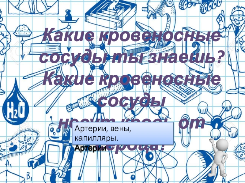 Какие кровеносные сосуды ты знаешь?Какие кровеносные сосудынесут кровь от сердца?Артерии, вены, капилляры.Артерии