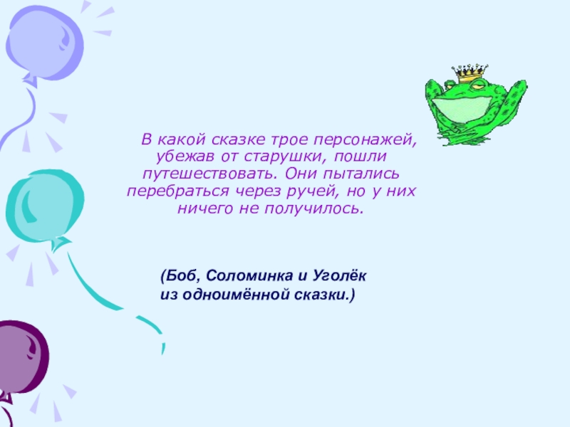 (Боб, Соломинка и Уголёк из одноимённой сказки.)