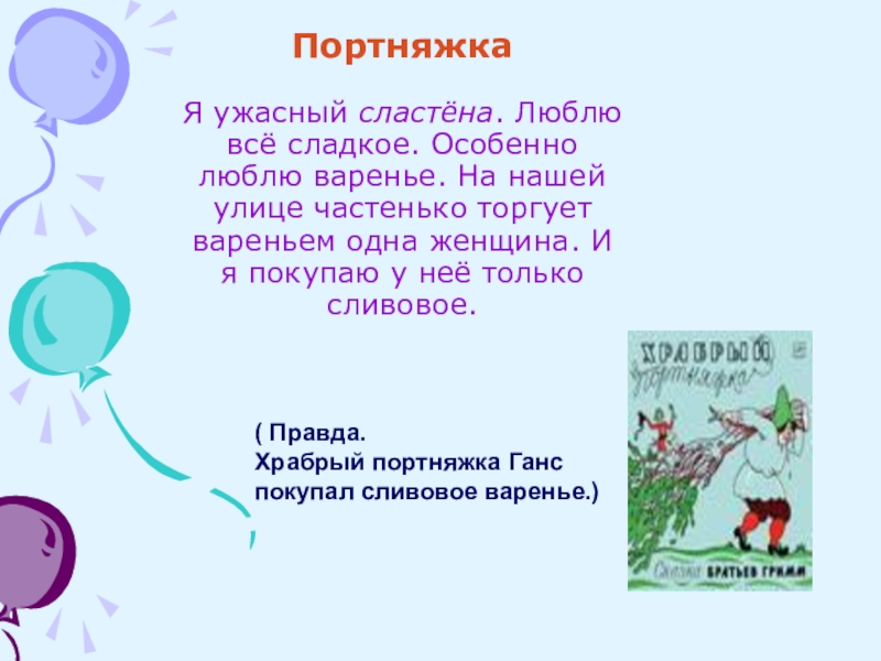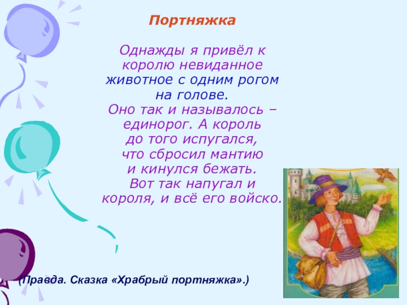 (Правда. Сказка «Храбрый портняжка».)
