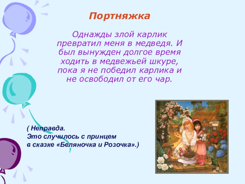 в сказке «Беляночка и Розочка».)
