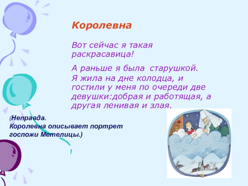 Королевна описывает портрет госпожи Метелицы.)