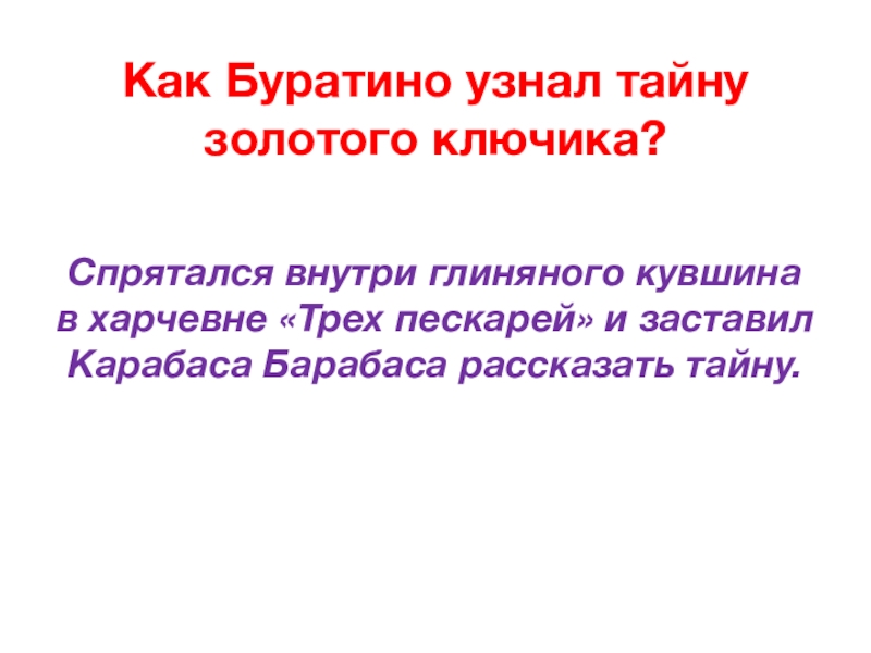 Он узнал, что в каморке папы Карло находится потайная дверь в театр