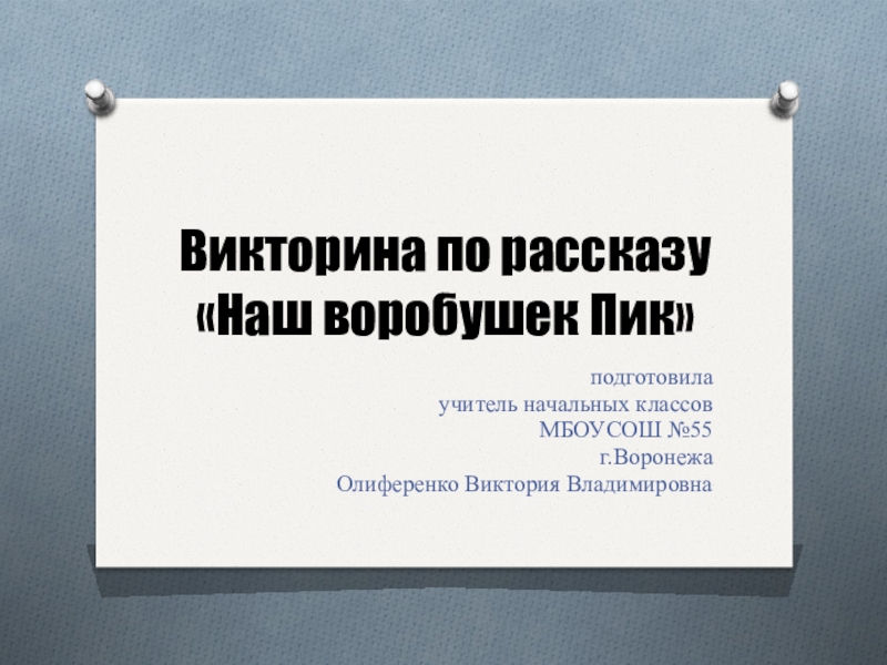 Викторина по рассказу «Наш воробушек Пик»подготовилаучитель начальных классовМБОУСОШ №55г.ВоронежаОлиференко Виктория Владимировна