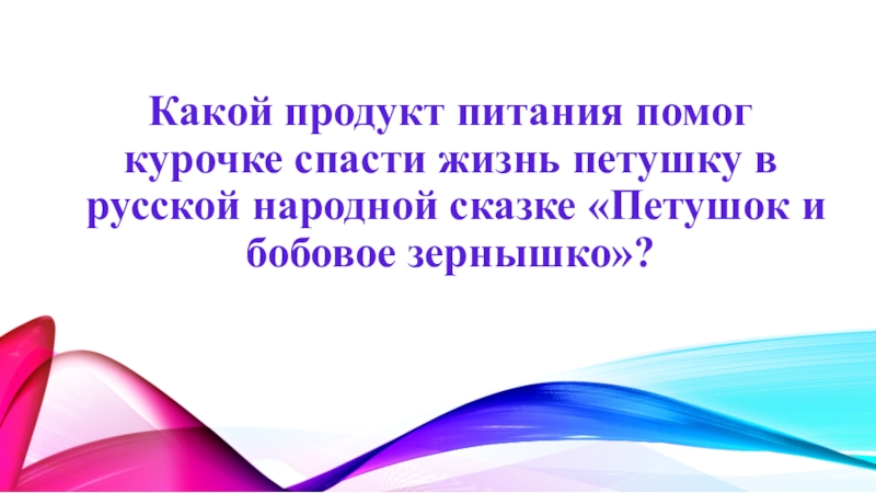 Слайд 4Какой продукт питания помог курочке спасти жизнь петушку в русской народной