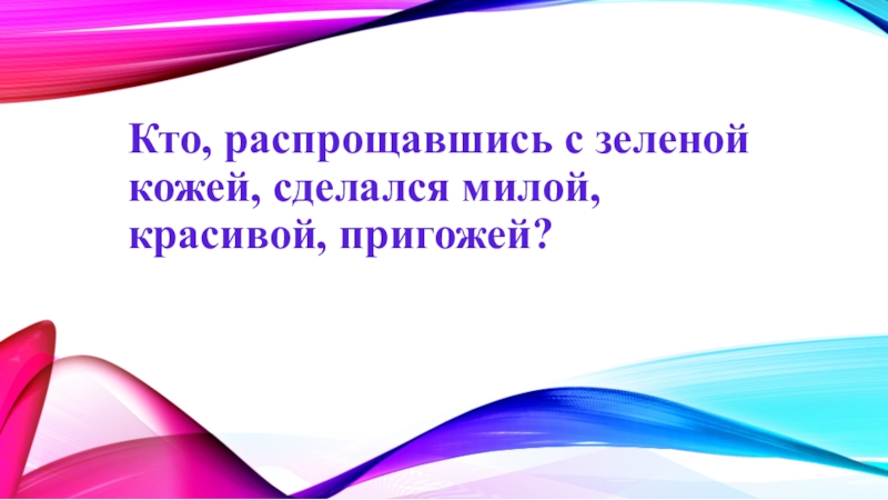 Слайд 12Кто, распрощавшись с зеленой кожей, сделался милой, красивой, пригожей?