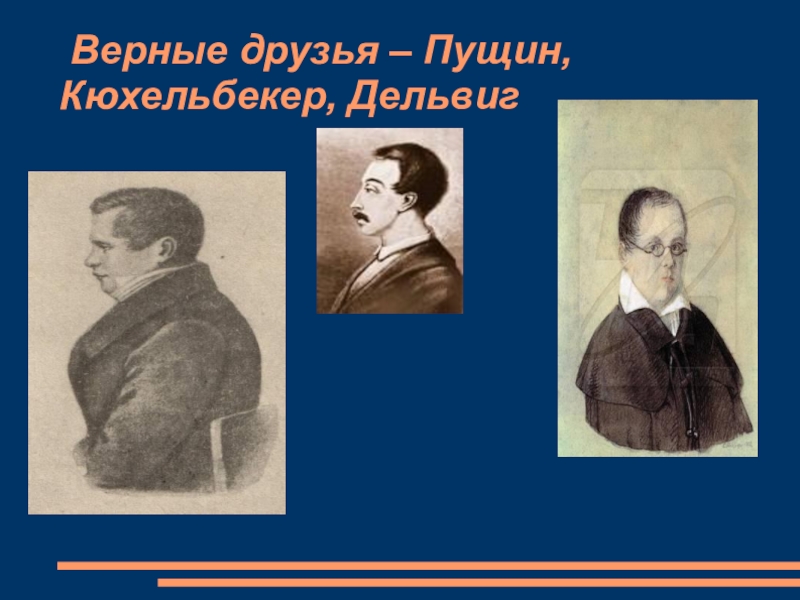 Слайд 16 Верные друзья – Пущин, Кюхельбекер, Дельвиг