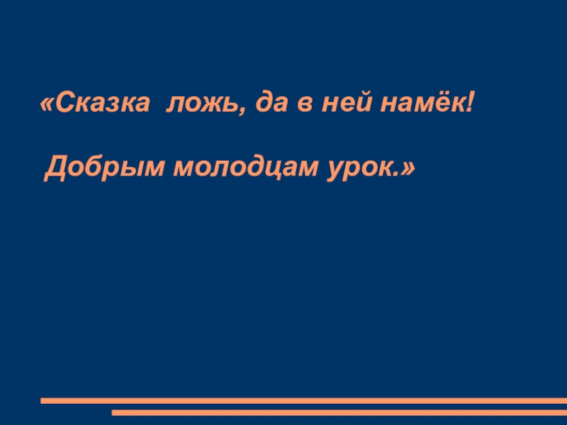 «Сказка ложь, да в ней намёк!    Добрым молодцам урок.»