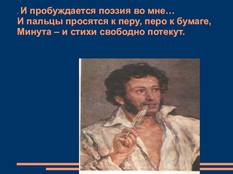 Слайд 29. И пробуждается поэзия во мне… И пальцы просятся к перу, перо
