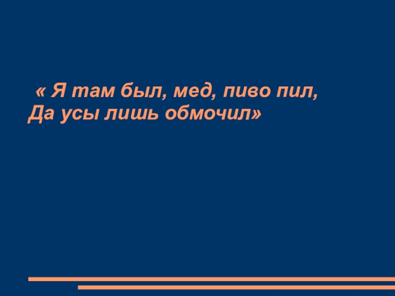 Слайд 76 « Я там был, мед, пиво пил, Да усы лишь обмочил»