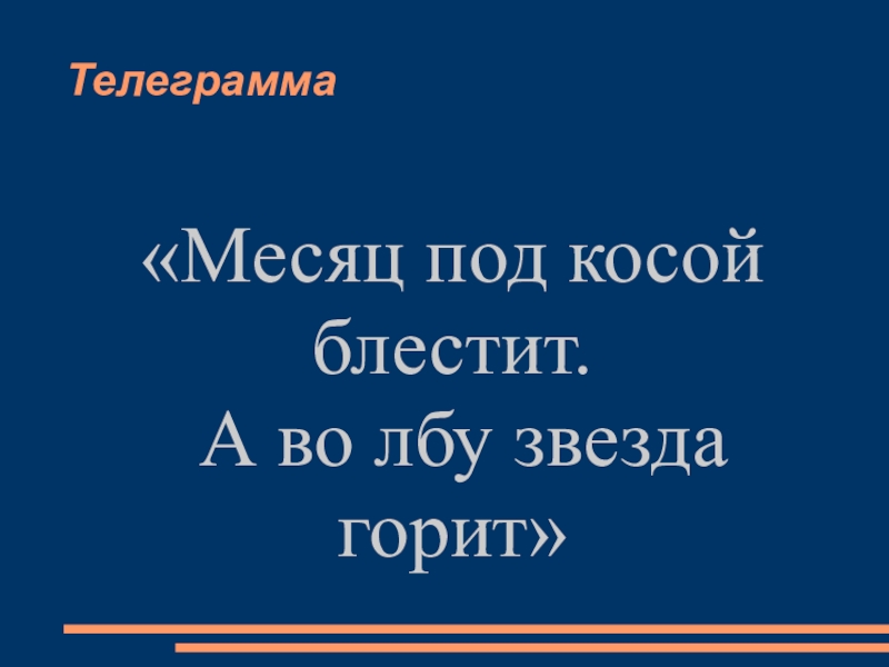 Телеграмма«Месяц под косой блестит. А во лбу звезда горит»