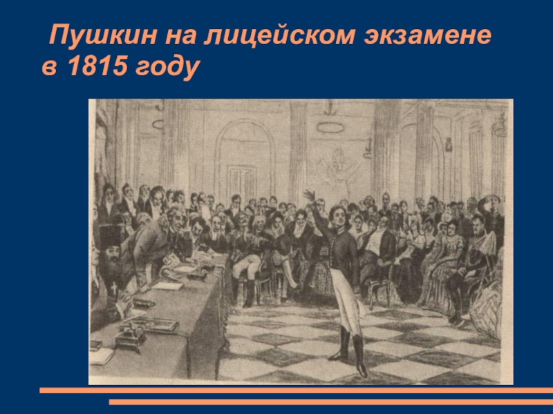 Слайд 17 Пушкин на лицейском экзамене в 1815 году