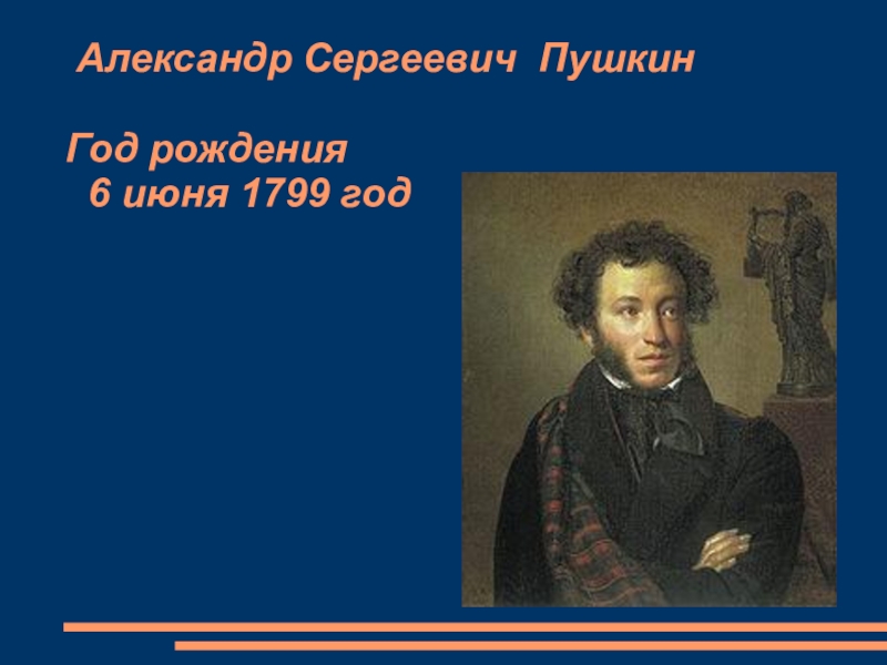 Александр Сергеевич Пушкин  Год рождения  6 июня 1799 год